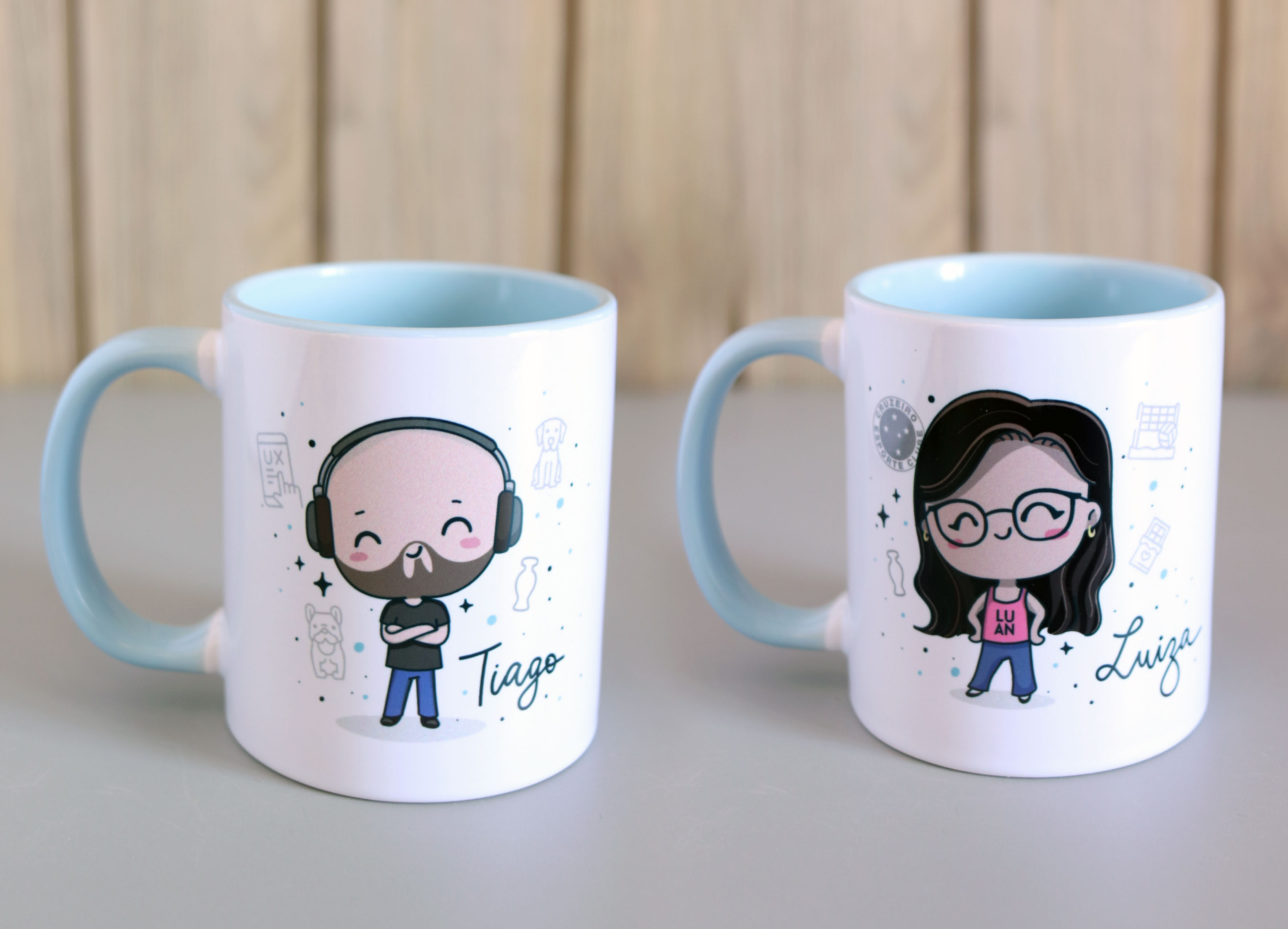 Já pensou criar um presente completamente personalizado para a pessoa? Com CARACTERÍSTICAS dela, GOSTOS, INTERESSES, NOME? Tudo completamente feito para aquela pessoa! Até a cor da caneca você pode escolher!